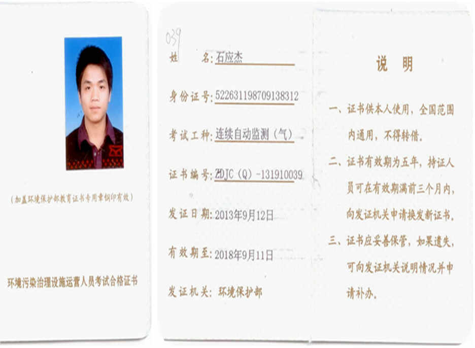 石应杰资质证书