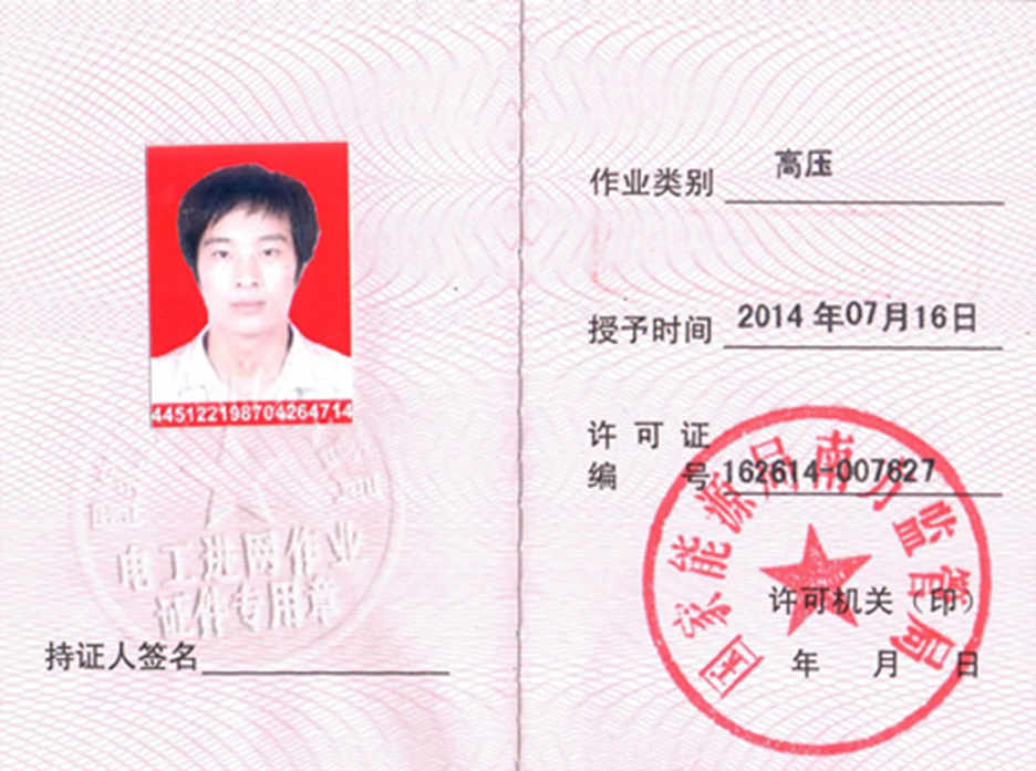 高压资质证书