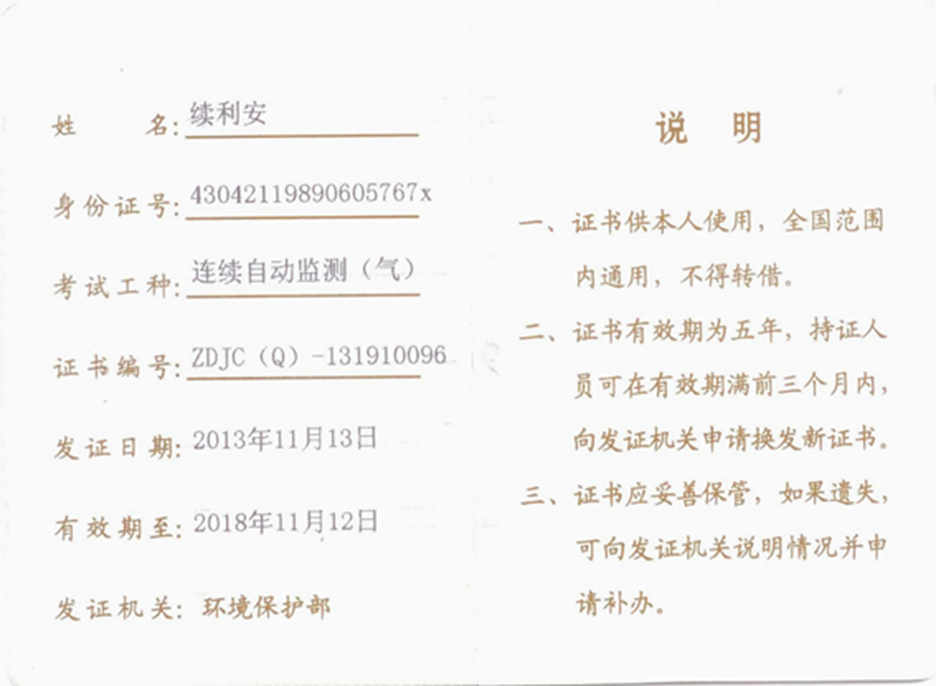 续利安资质证书